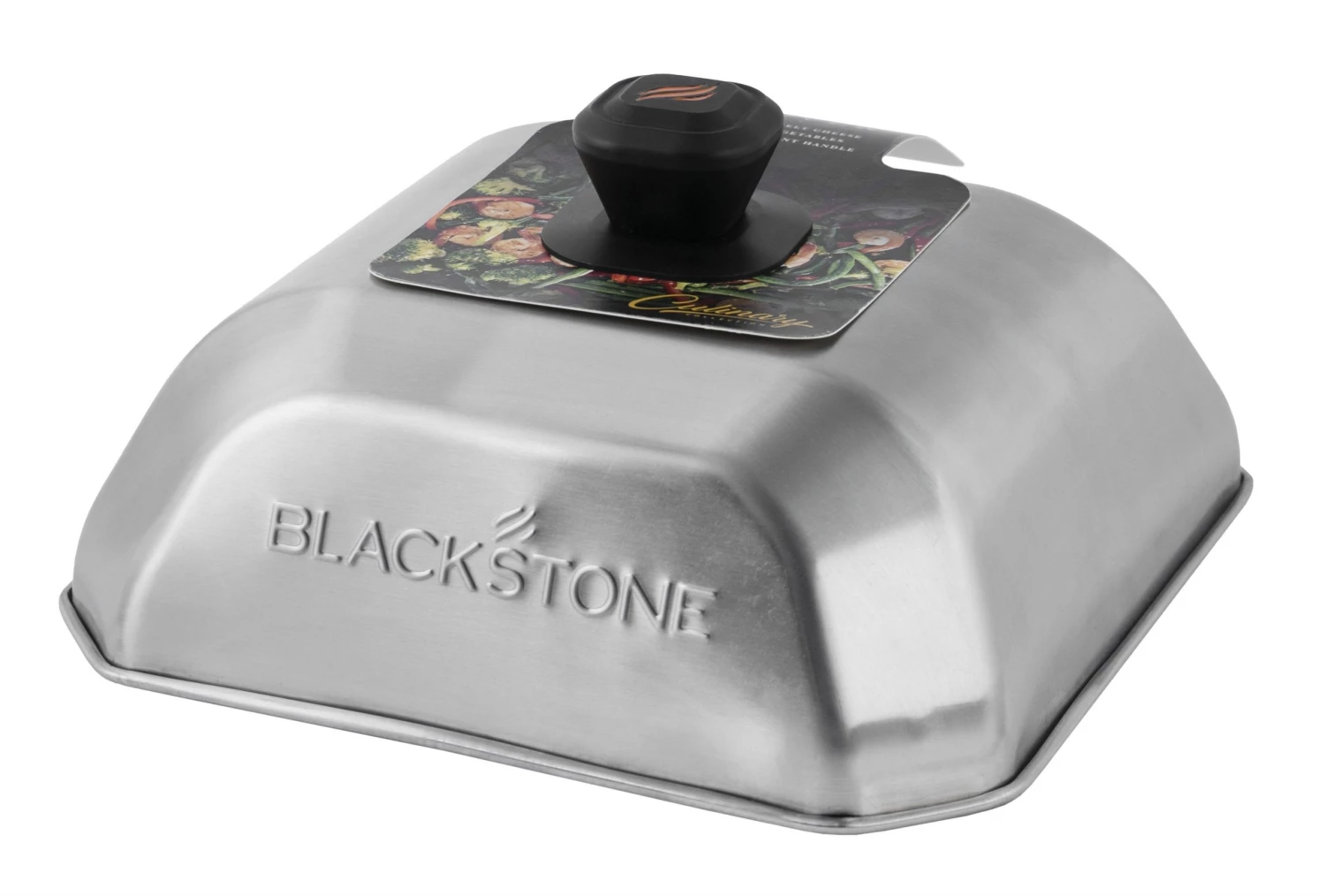 With or without a hood on your griddle, you often need to turn up the heat on just a few pieces of food. With the Blackstone Culinary Square Basting Dome, you can target those few tasty dishes. Quickly melt cheese, steam vegetables, or prevent grease from splattering with this stylish addition to your griddling accessories.
