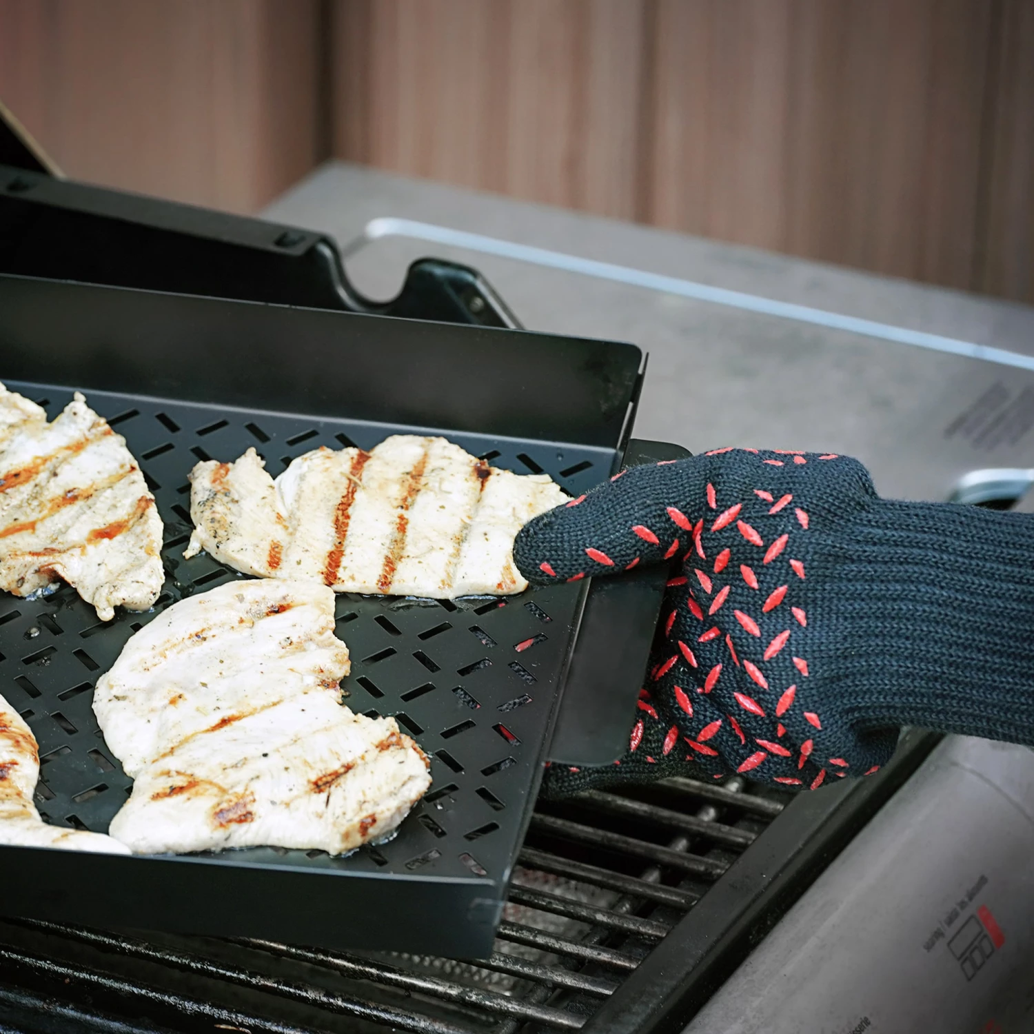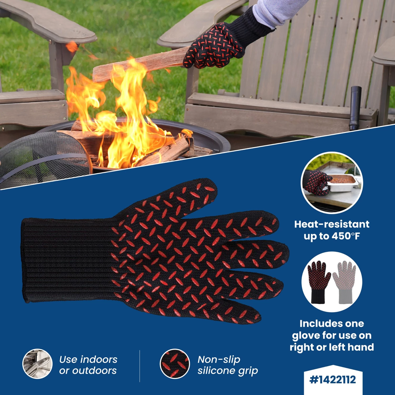 Keep safe from the heat with this Blue Rhino® grilling glove. It’s heat-resistant, fire-retardant and made from thick quilted cotton so you can handle toppers and tools straight from the grill. Designed to fit the full length of your arm and hand. One size fits all.