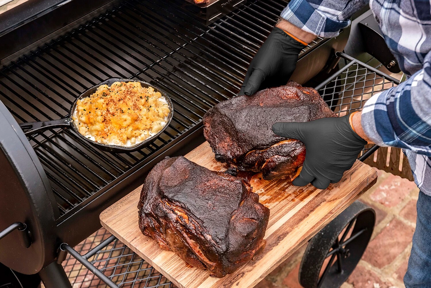 Oklahoma Joe’s Disposable BBQ Gloves keep your hands clean when prepping or cooking your favorite foods. This kit contains 50 disposable nitrite gloves and 2 cotton glove liners for an added layer of heat resistance when handling food hot off the smoker. Keep the gloves in their box with tear-away lid for easy, convenient access when you need them most.