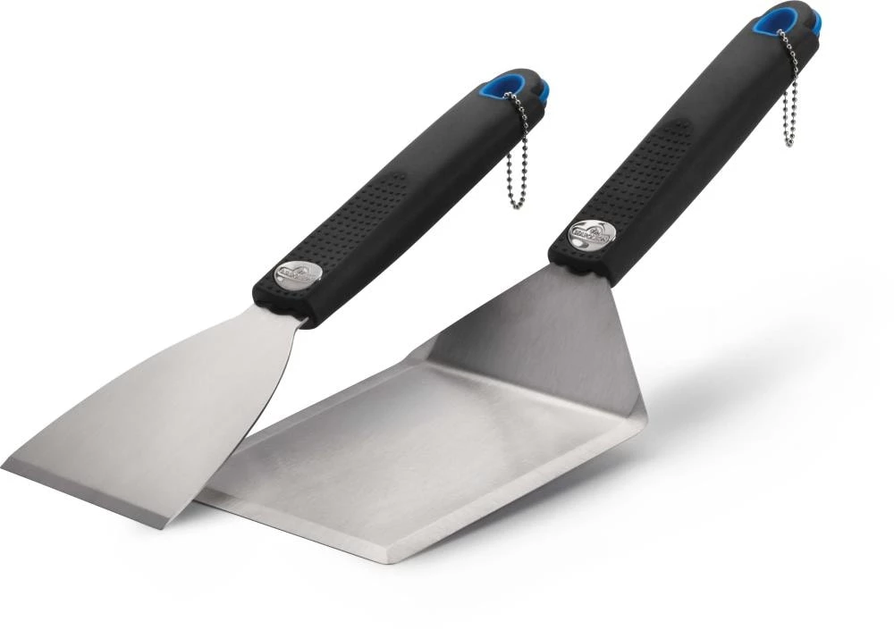 Try European style grilling with this Two-Piece Plancha Toolset, ideal for use with the Napoleon Cast Iron Plancha. The oversized spatula easily handles all types of food while the scraper provides safe and easy cleanup. Durable stainless steel construction with ergonomic handles means years of comfortable use.