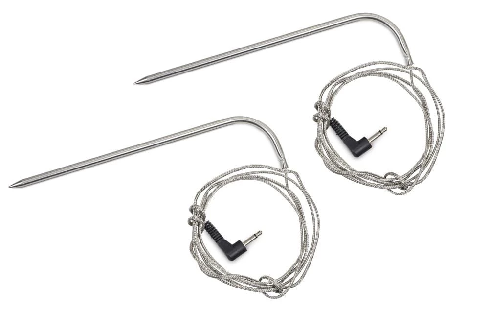 Pit Boss meat probe two pack. 6″ probe with 48″ high heat woven wire. Compatible to Pit Boss grills and smokers with digital control meat probe capability. Meat probes allow you to track internal temperature of your food. Pit Boss has integrated the probe into our digital control system. Now you can check your internal temperatures on the control panel; leaving heat and smoke in the grill.