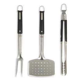 - Include a meat fork, turner spatula, and locking tongs