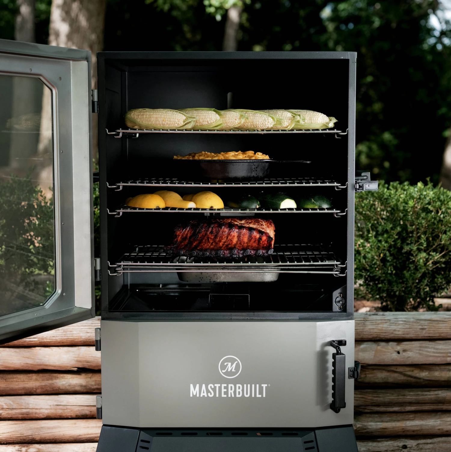 The Masterbuilt® Digital Charcoal Smoker is the first of its kind – smoked charcoal flavor with digital controls. Set the temperature on the digital control panel or your smart device and the DigitalFan™ maintains the desired cooking temperature. The charcoal tray holds 16lbs of briquette charcoal or 12lbs of lump charcoal for up to 13 hours. Master the art of charcoal smoking with Masterbuilt.