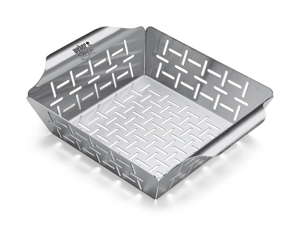 Grill vegetables, fruits and breads with ease in the Weber stainless steel grilling basket. It’s constructed of 430-grade stainless steel for exceptional heat retention. It features slits to enable the juices to flow out and let your food breath.