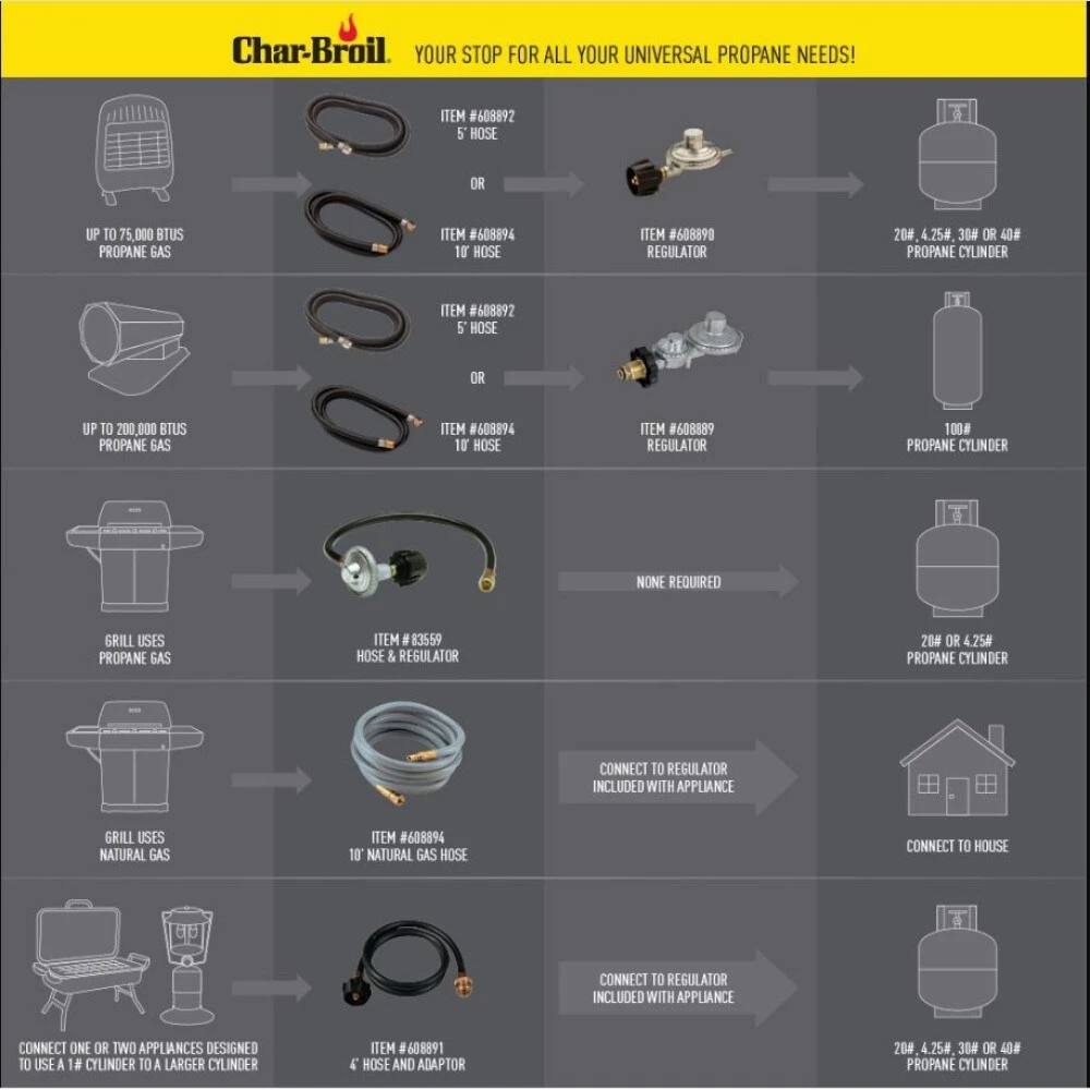 - Replaces regulator on LP gas grills up to 75,000 BTU’s