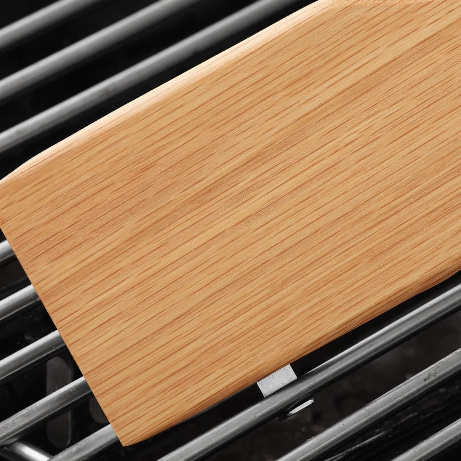 Now your grill can be safely and easily cleaned with our natural hardwood scraper. Not only does it customize to any grill grate to help easily remove burned-on food, but it features a tooth that fits between the grates securing the scraper for easy back and forth motion. It’s safe, natural and easy to clean, requiring no maintenance.